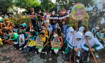 Pokja Bank Sampah SMP Negeri 12 Surakarta berpartisipasi dalam kegiatan Grebeg Sampah 2022 yang diadakan di Car Free Day, jalan Slamet Riyadi, Solo ...